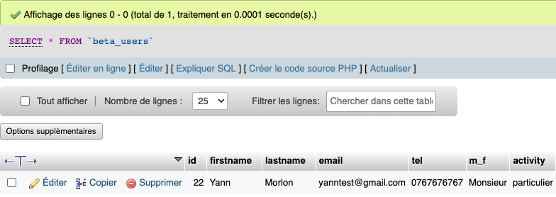 Les champs sont bien tous renseignés, la liste des champs voulu étant :