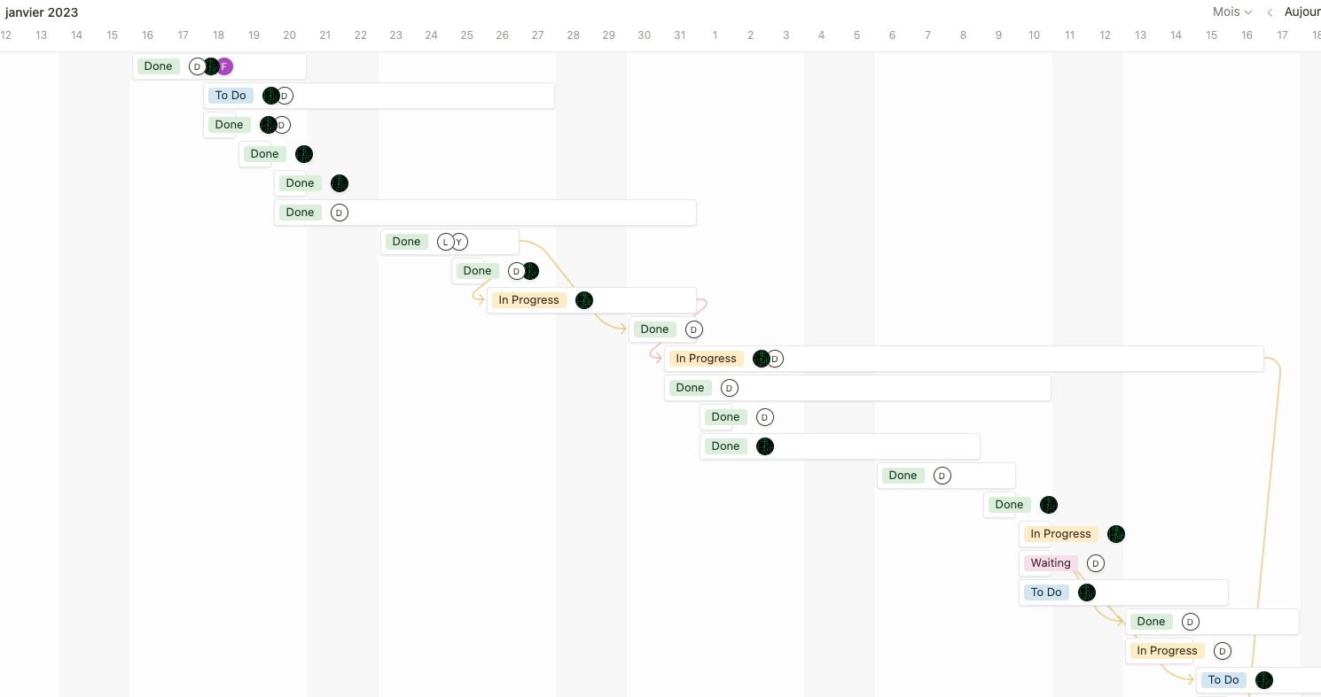 En utilisant Notion pour la gestion de projet, l'équipe peut travailler de manière collaborative, en temps réel, et avoir une vue d'ensemble de l'avancement du projet. Les mises à jour sont synchronisées en temps réel, ce qui permet à chaque membre de l'équipe de rester informé des dernières modifications apportées au projet.